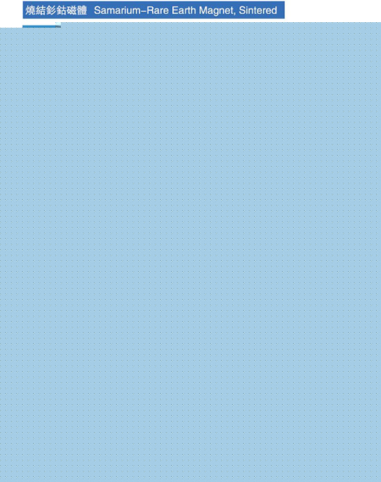 钐钴磁铁,是一种稀土磁铁,是由钐、钴和其它金属稀土材料经配比,溶炼成合金,经粉碎、压型、烧结后制成的一种磁性工具材料,具有高磁能积、极低的温度系数,最高工作温度可达350℃,负温不限,在工作温度180℃以上时,其最大磁能积(BHmax)、矫顽性(coercivity)及温度稳定性和化学稳定性均超过钕铁硼永磁材料。具有很强的抗腐蚀和抗氧化性;所以被广泛应用在航空航天、国防军工、微波器件、通讯、医疗设备、仪器、仪表、各种磁性传动装置、传感器、磁处理器、电机、磁力起重机等。钐钴磁铁的最大磁能积(BHmax)的范围从16 MGOe到32 MGOe,其理论极限是34 MGOe。钐钴磁铁有两种组成比,分别为(钐原子:钴原子)1:5和2:17。