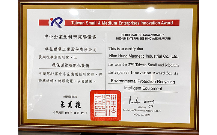 Congratulations to Nian Hung Magnetic Industrial for winning the 27th Taiwan Small & Medium Enterprises Innovation Award